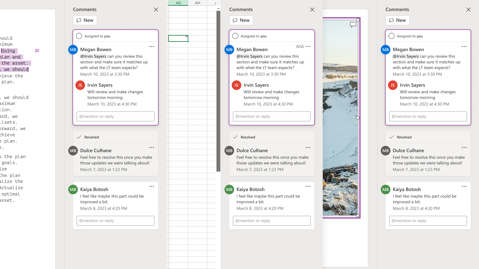 Anchored commenting and mentioning within Microsoft Office, including threading and task delegation.
